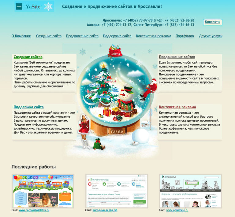 Компания «Веб технологии» работает на рынке создания сайтов с 2006 года и на сегодня является одним из лидеров рынка в Ярославской области. Большой практический опыт и высокий профессионализм наших сотрудников позволяет предоставлять нашим клиентам качественные, своевременные и приемлемые по цене Интернет решения. Веб сайты, разработанные нашей компанией, стильные и оригинальные по дизайну, хорошо оптимизированные под поисковые системы, понятные для простых пользователей.